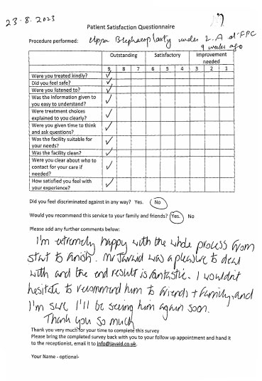 This surgery has changed the way I feel and present myself. Without it I can not believe I would be as happy. Mr Javaid has been fantastic throughout. - R.B.