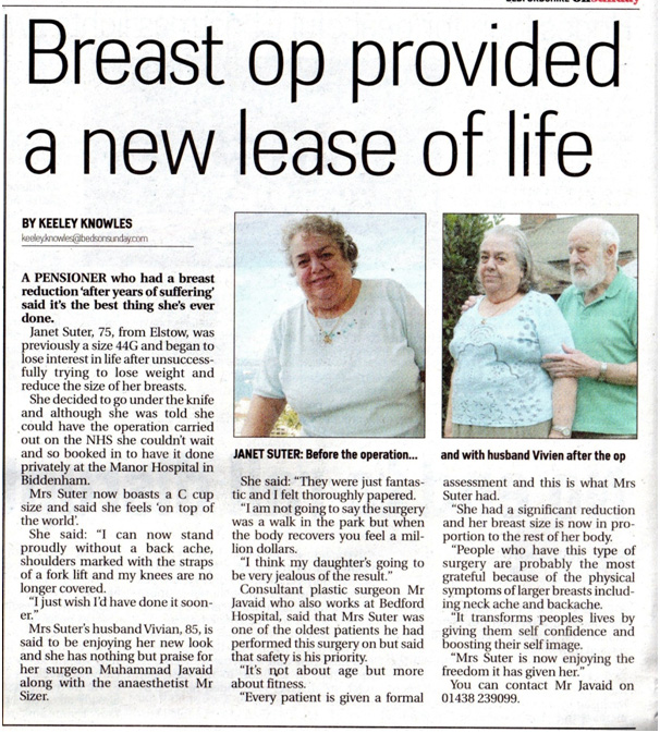 JB: I highly recommend Mr Javaid and the nurses / personnel I came into contact with. The minor surgery was excellent in terms of treatment, aftercare and results. Thank you very much for your care.
